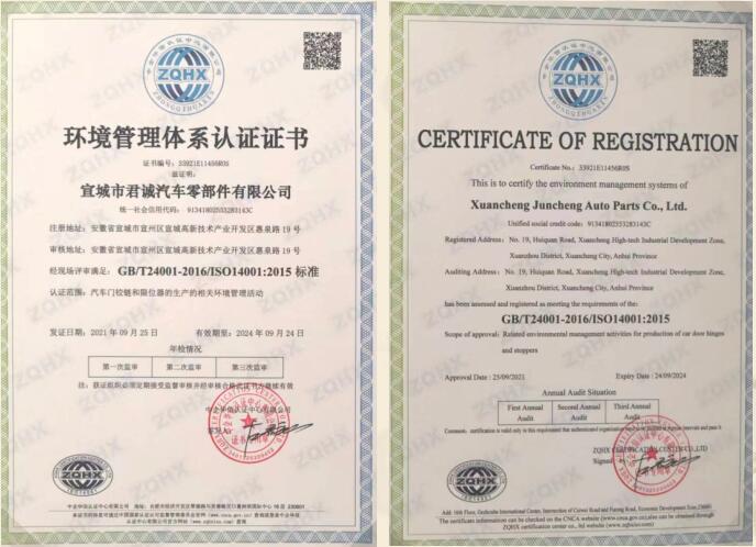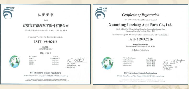 宣城市君誠汽車零部件有限公司是專業(yè)生產各類汽車鉸鏈及限位器的民營企業(yè),總投資3000余萬元,位于宣城高新技術產業(yè)開發(fā)區(qū),緊鄰宣廣、宣蕪高速公路,地理位置優(yōu)越,交通便捷。是“國家高新技術企業(yè)、知識產權貫標企業(yè)、安徽省商標示范企業(yè)、安徽省科技型企業(yè)”,已獲得國家發(fā)明專利18項,實用新型發(fā)明專利4項。主要從事各類汽車門鉸鏈及限位器的設計、研發(fā)、生產、和銷售,具有專業(yè)的合作團隊。自2015年正式生產至今,已形成一整套完整的生產、質量管理體系。并已通過國家強制性產品認證“3C”體系認證及IATF16949國際質量體系認證。在生產設備上,公司擁... 【查看詳細】